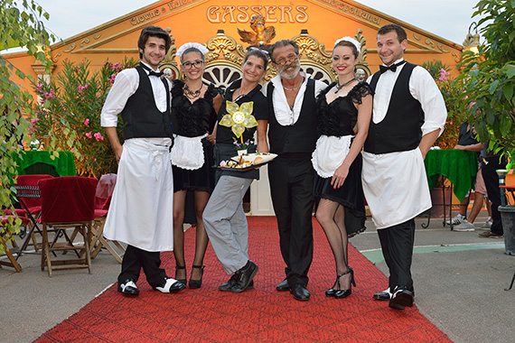 Im Mittelalter pflegte man an den Adelshöfen ausgiebig und edel zu tafeln und sich dabei von Hofnarren amüsieren zu lassen. Marion und Frithjof Gasser haben diese altgediente Idee ausgegraben und sorgen mit ihrem Verzehrtheater, dass der Gast königlich bedient wird. So kann es gut und gerne vorkommen, dass eine bestellte Flasche Wein auf einer Messerspitze balancierend kredenzt wird oder der Service eine Bestellung singend weitergibt. Im über vierstündigen Spektakel verschmelzen kulinarische und zirzensische Genüsse.